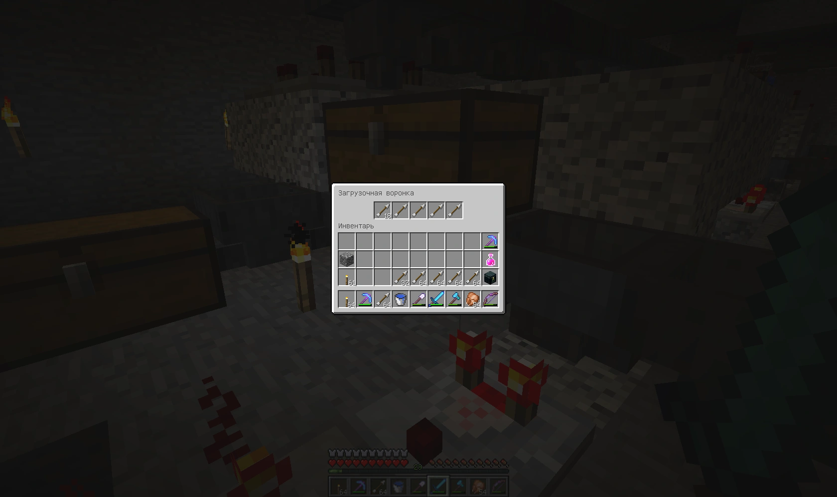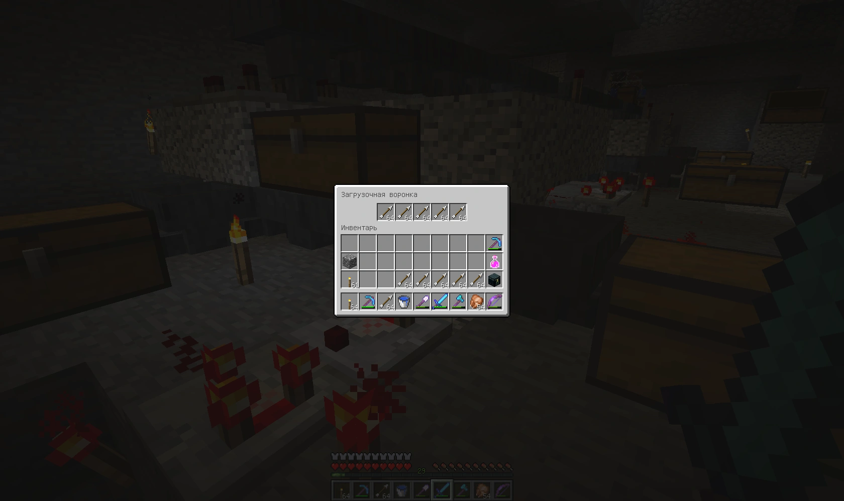 Допустим, вы соорудили ферму, основанную на спаунере плюс обычном спауне мобов. И десятками крушите разную враждебную живность. И, соответственно, сыпется тонны дропа. Что-то полезное, что-то нет. Сортировать вручную? Зачем, если есть воронки, сундуки и красная пыль?