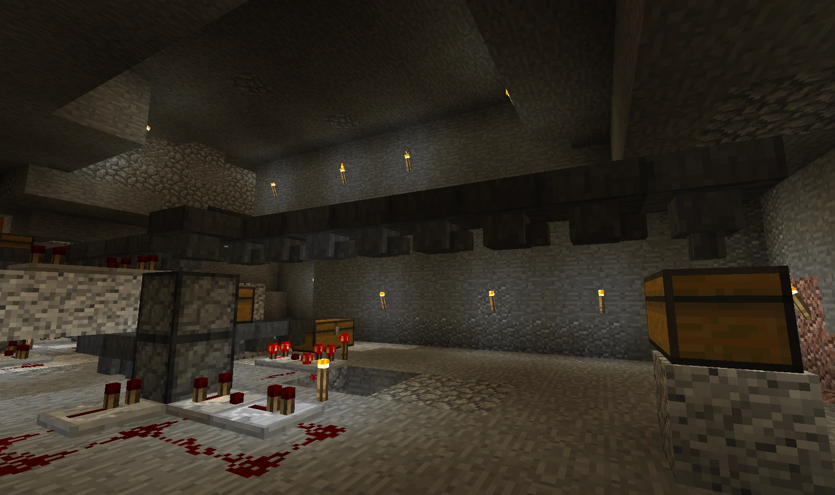Как вы понимаете, данные устройства можно собирать в каскады. Просто передайте не отсортированные вещи на следующую ступень сортировки и так далее. При установке следующего каскада оптимально отмерять расстояние так, чтобы блок с красным факелом от первой воронки стоял на краю ямы с тоннелем предыдущего устройства.