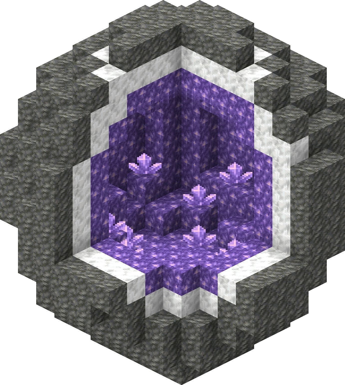 | 21w20a | Аметистовая жеода действительно стала встречаться реже: 1 структура на 53 чанка вместо 1 структуры на 30 чанков. | ||||