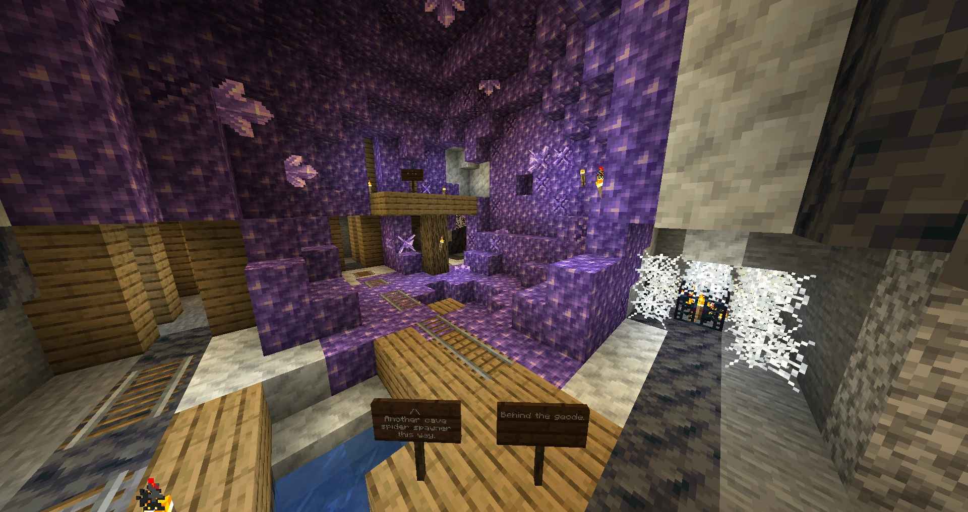 Аметистовая жеода сгенерировалась в заброшенной шахте[6]