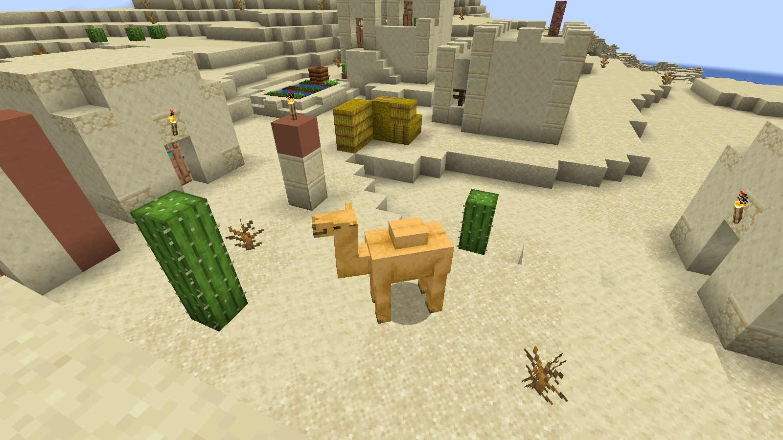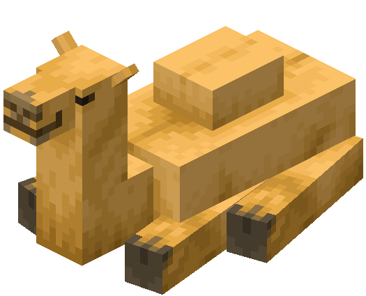 На одном верблюде могут ездить до двух игроков, и для этого достаточно одного седла. Верблюды ходят достаточно медленно и бегают лишь немного быстрее. Верблюды могут делать «рывок», что запустит его на несколько блоков вперед. У рывка есть время восстановления 2,75 секунды, прежде чем можно будет снова использовать его, и он может достигать расстояния до 12 блоков.