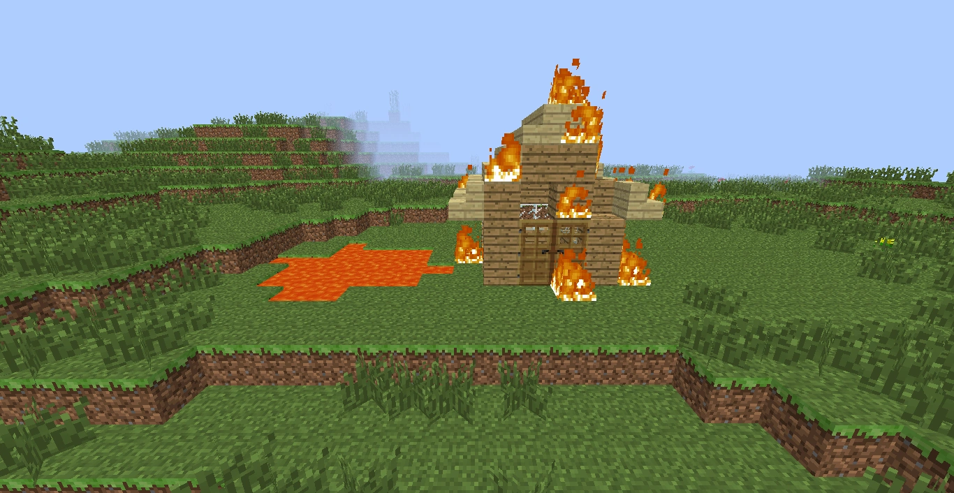 | 1.2.6 | Лава может поджечь окружающие горючие блоки. Лесные пожары могут начаться спонтанно, если наземные озёра с лавой сгенерируются среди деревьев во время. | ||||