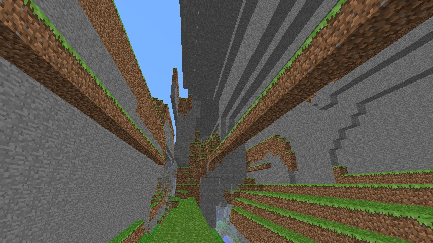 Иногда можно встретить огромные столбы из гравия, которые доходят до потолка верхнего слоя. Кроме того, на некоторых искаженных пляжах можно будет встретить столбы из песка, простирающиеся к самому низу карты несмотря на то, что песка там быть не должно. Угловые Далёкие земли имеют склонность к наличию почти идеальных диагональных линий, которые вырезаны внутри полов и потолков в слоях. Если их протрассировать (отследить их пути), то можно увидеть, что все эти линии пересекаются между собой в точке с координатами X/Z ±12,550,821. Это похоже на то, как крайние Далёкие земли имеют неизменный шаблон вдоль линий, перпендикулярных к их граням, но намного менее выражено.