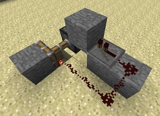 3) Поршневой ДОБ, работающий на блоках красного камня:
