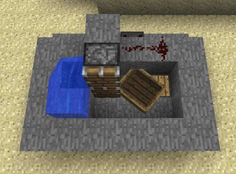 Этот тип ДОБ’а использует то свойство воды, что вода затекает в ближайшую дыру, но не замечает новых дыр, пока не обновится по какой-то другой причине. Этот дизайн еще не устарел, хоть и сложнее чем более новые. Блок воды является сенсором.