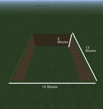 | Шаг 1 | | После того, как вы выкопаете яму в 10x13x4 блока, постройте детектор дня и ночи как показано на картинке. |