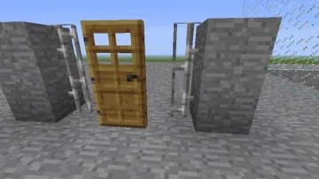Железные решётки можно использовать как «бойницы». Для этого нужно разместить между двумя решётками дверь. Через образовавшиеся отверстия можно стрелять из лука, в то время как мобы не смогут пройти через них.