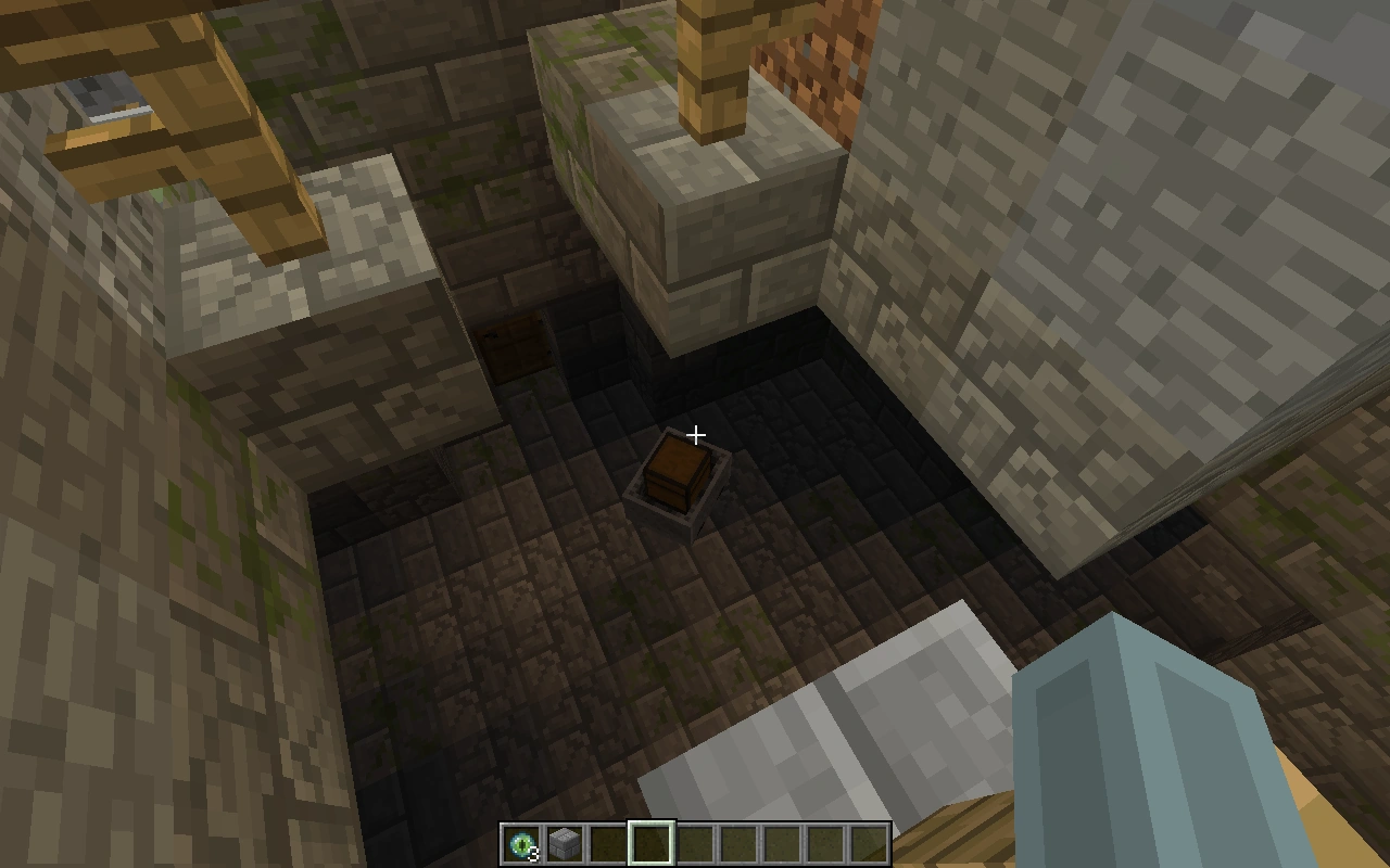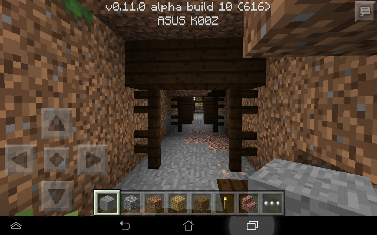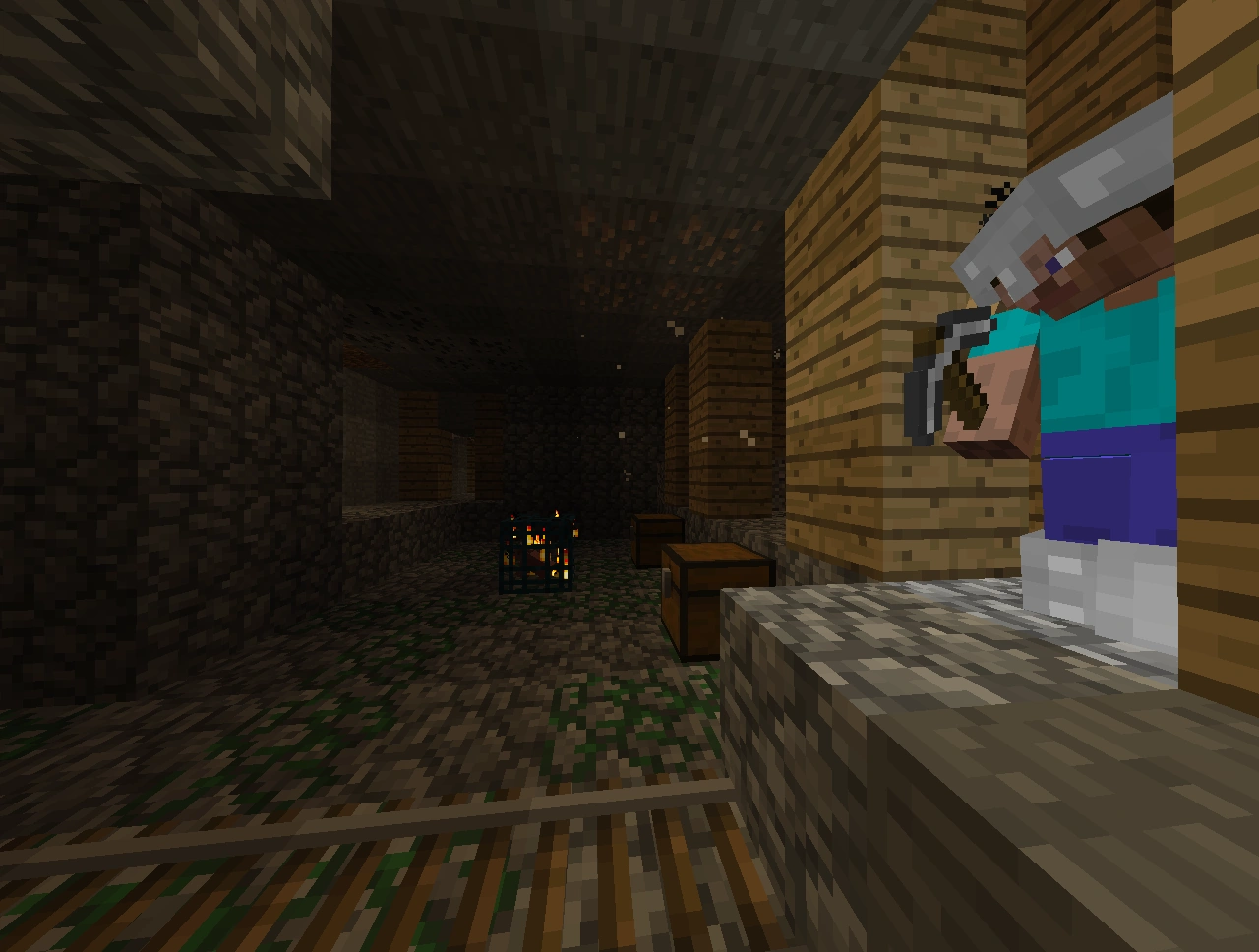 В шахтах стоят П-образные опоры из досок и заборов через каждые 3-4 блока, что сильно помогает с проблемой нехватки дерева для крафта инструментов и факелов. Некоторые места освещены факелами.