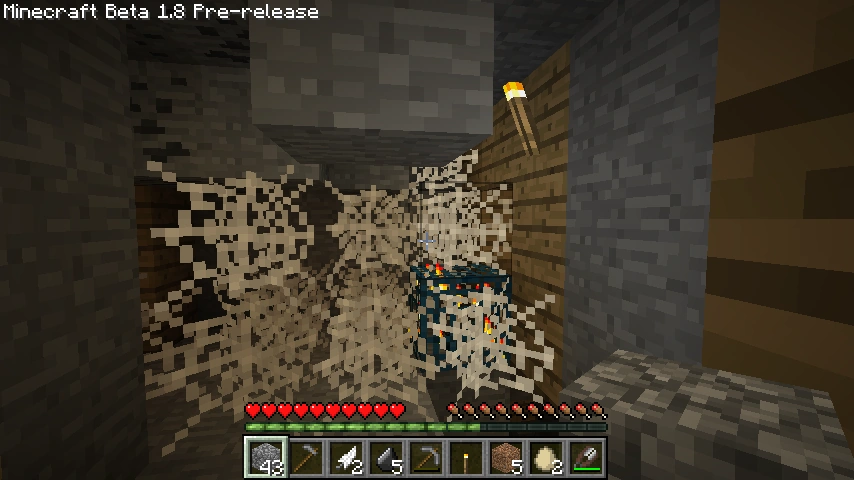 1.8pre1Заброшенные шахты были добавлены в игру. Тогда они генерировались с множеством ошибок. Например, можно было встретить рельсы, висящие в воздухе.