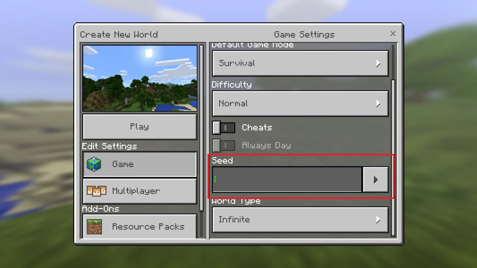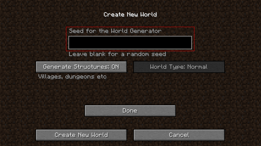 Стоит отметить, однако, что если в поле зерна писать слова или фразы, это ограничивает количество возможных создаваемых миров, из-за ограничения базы данных функции. Вы сможете использовать только 4 миллиарда комбинаций букв. Используя цифры в качестве зерна, Вы получите доступ к созданию максимального количества игровых миров, которое приблизительно равно 281 триллиону. Однако, даже если Вы будете каждый день создавать 1000 миров с разными значениями зерна, вам потребуется 10,960 лет, чтобы достигнуть последнего возможного значения в случае ввода комбинации букв.