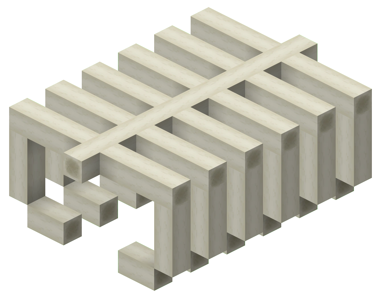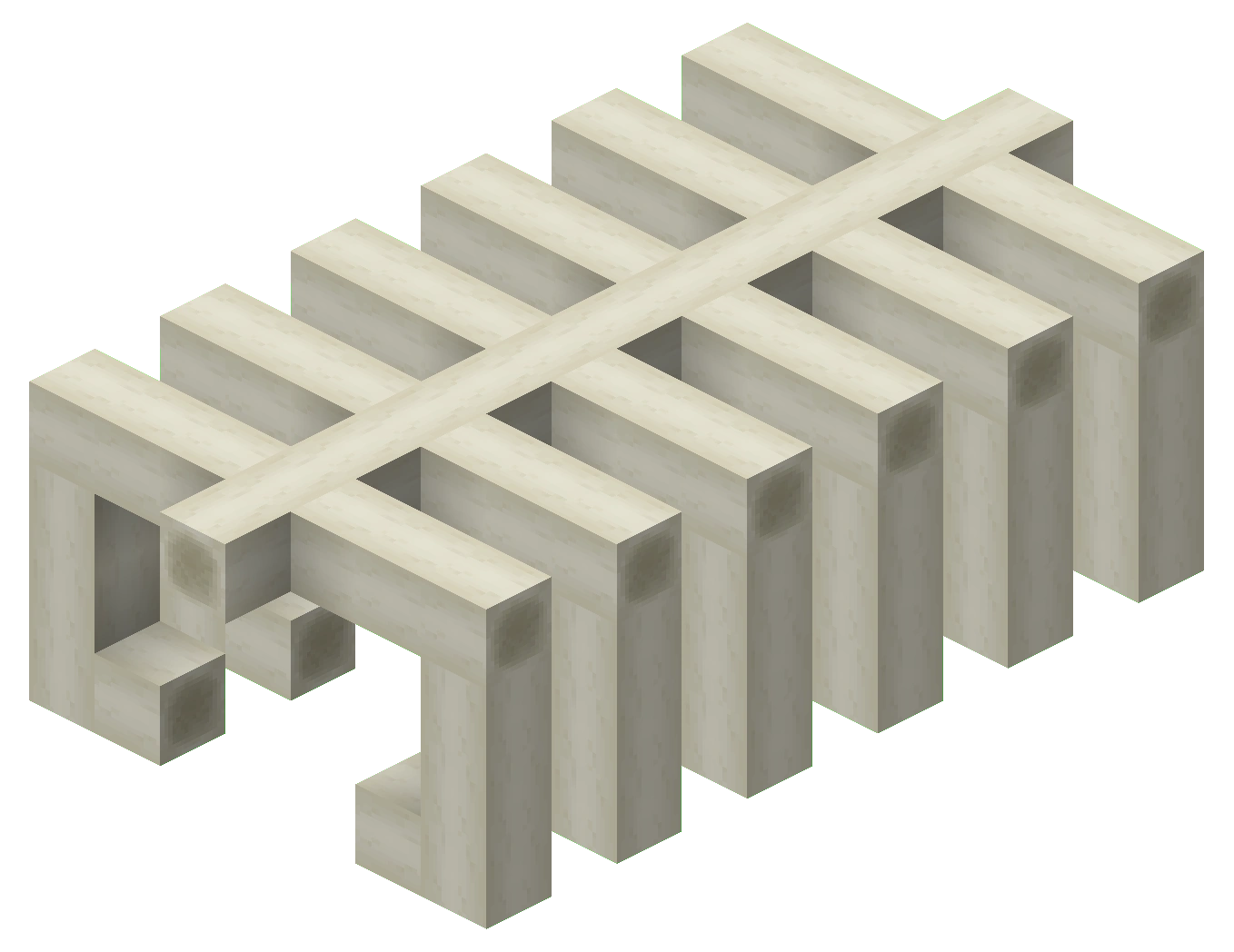Ископаемые останки могут генерироваться в качестве одного из четырёх вариантов черепа или одного из четырёх вариантов позвоночника. Любой костяной блок может быть заменён угольной рудой, или если ископаемые останки появились ниже нулевой высоты, то костяной блок может быть заменён алмазной рудой.