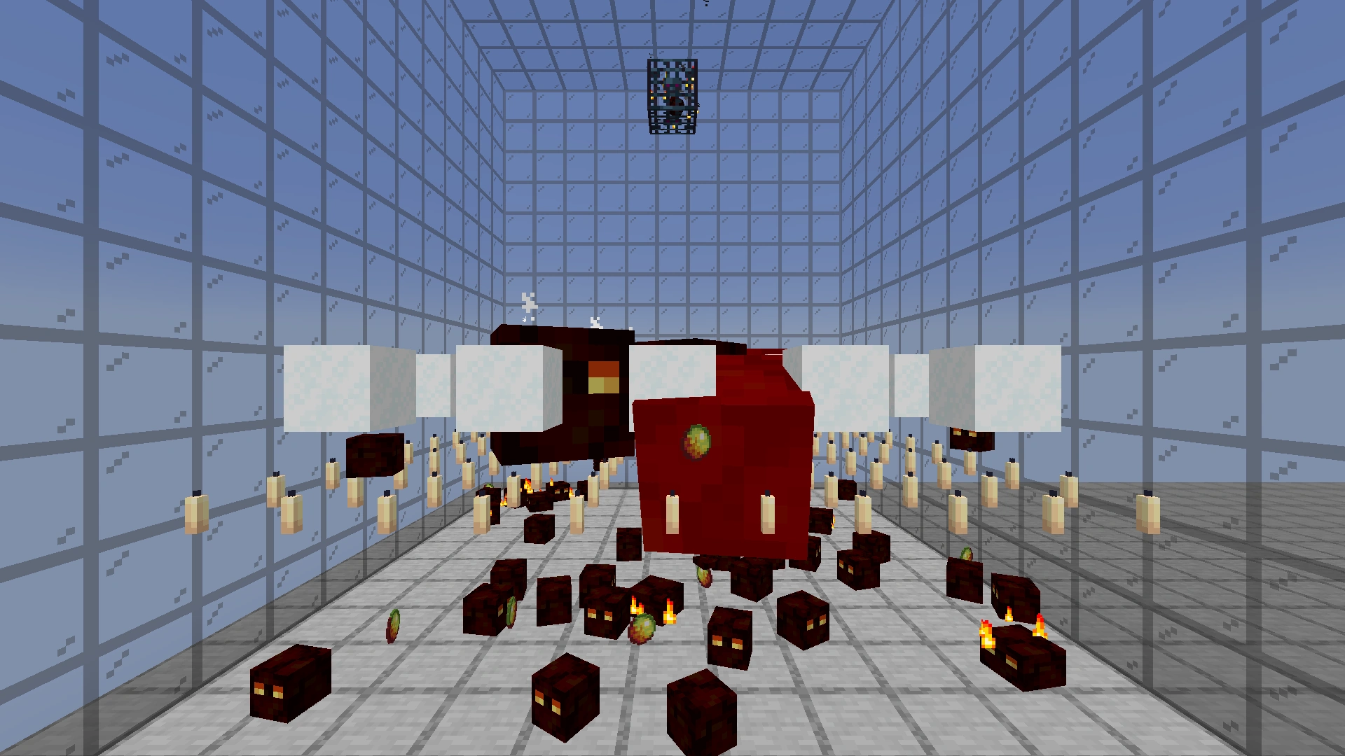 Возможный способ добывать блоки квамп в неограниченных количествах, заключающийся в размещении сетки из рыхлого снега и слоя одиночных свечей для убийства больших и средних магмовых кубов. Затем малые магмовые кубы проваливаются вниз, где съедаются лягушками.