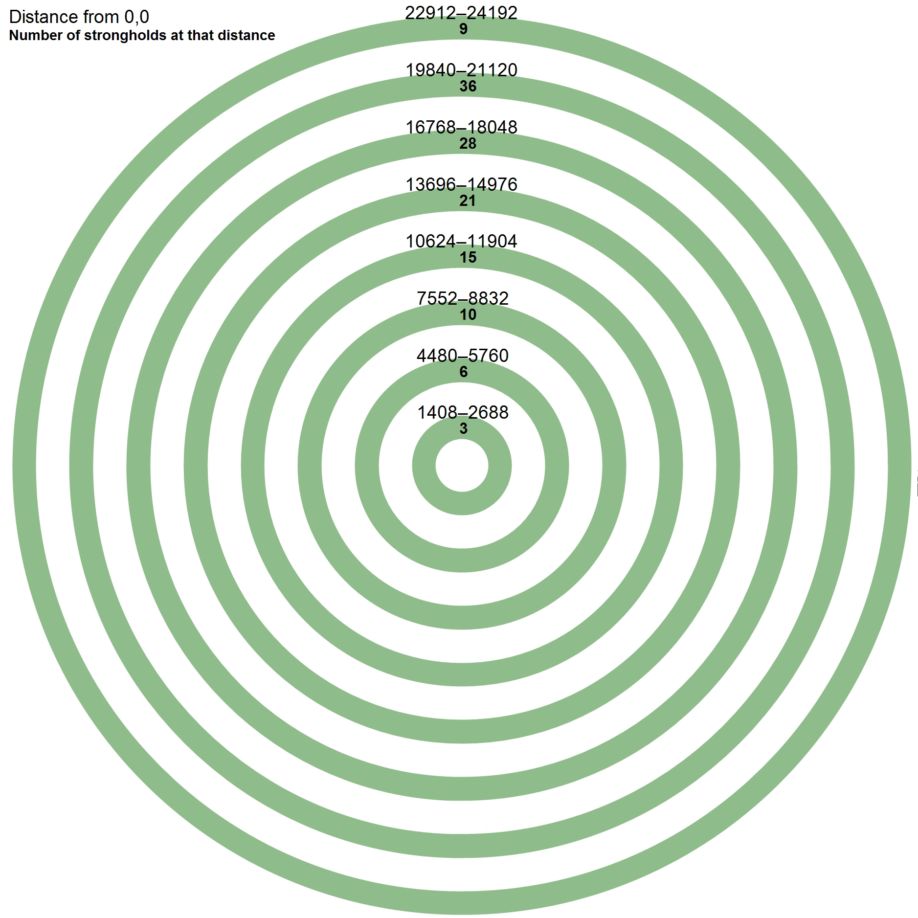 В Java Edition один игровой мир содержит 128 крепостей. Они генерируются в случайных местах в пределах колец с центром в точке с координатами x = 0, z = 0 (хотя иногда части крепостей могут выходить за пределы кольца, в котором крепость генерируется), распределяясь под приблизительно равными углами между собой.