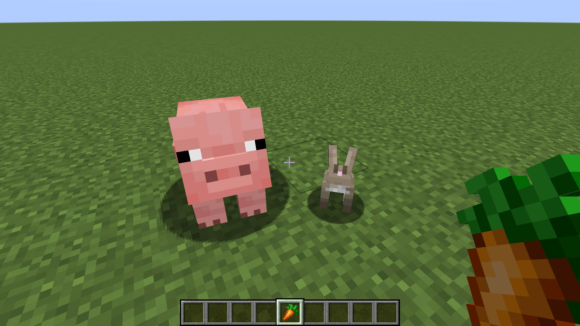 Кролики и свиньи идут за игроком, держащим в руке морковь. Также их можно разводить при помощи моркови.