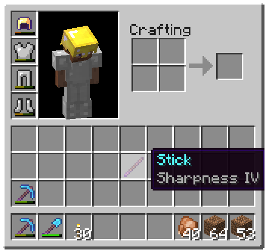 Я так понимаю что теперь в SMP не зачаруешь палку на Аспект Огня? Очень круто было бы на ПвП! Никогда не ломающийся меч! PleasantMisha 09:40, 20 декабря 2012 (UTC)