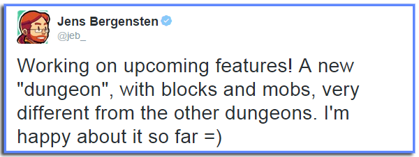 Также был новый твит от Jeb о новых данжах с новыми мобами. http://www.minecraftforum.net/news/60099-dungeons-in-minecraft-and-you/ Прошу добавить.