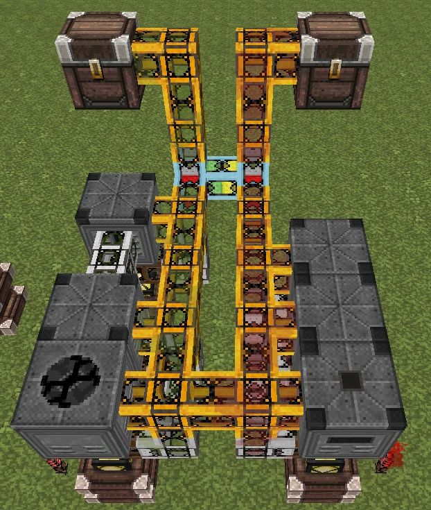Можно ли сделать так, чтобы все руды из сундука переходили по трубам в печку, там плавились, и уже готовые слитки переходили в другой сундук? ---Countersem