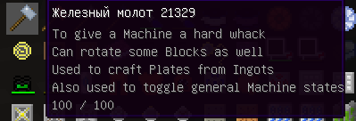 - Во всех рецептах GregTech там где было очищенное железо, теперь используется обычное. Установите NEI и смотрите рецепты там, автор их меняет часто. Вообще молот можно сделать из бронзовых слитков. --Atributz (обсуждение) 11:32, 9 ноября 2013 (UTC)