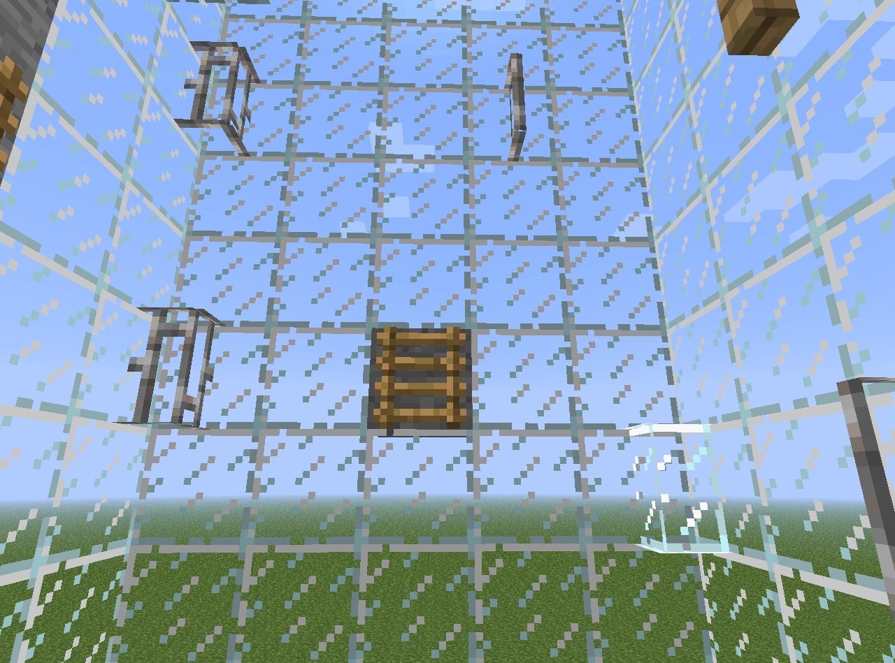 - Парящие блоки, по которым нужно добраться до цели. Для усложнения используются блоки льда, или же решётки (с версии 1.9 один блок железной решётки меньше), стеклянные панели (в качестве решёток), лестницы, головы, заборы и булыжниковые стены — как неполные блоки.