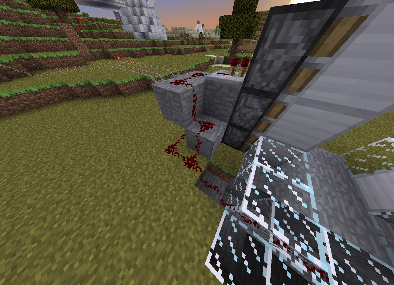 Для иллюстрации дверь построена на поверхности, некоторые элементы заменены на стекло, сама дверь состоит из железных блоков. Разумеется, если Вам нужна незаметная дверь, все следует строить из одного материала.