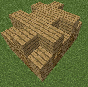 Этот дом рекомендован новичкам, так как он очень простой и лёгкий для запоминания, но неэффективный. Сумма: 47,50 дерева (включая доски для дверей); 1 дверь; 0,35 жителя 5 длина; 8 ширина; 3 высота 135,714 дерева на жителя; 0,014 жителя/м2; 0,004167 жителя/м3