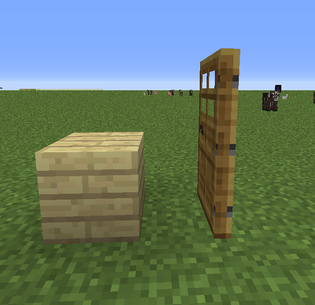 Вид на квартирный комплекс. Квартиры созданы при помощи шаблона.Может быть поставлена в ряд по горизонтали и вертикали, чтобы создать квартирный дом. Убедитесь в том, чтобы между параллельными зданиями есть расстояние в хотя бы 1 блок. Сумма: 18 дерева (включая доски для дверей); 4 дверей; 1,4 жителя 5 длина; 6 ширина; 3 высота 12,857 дерева на жителя; 0,058 жителя/м2; 0,0194 жителя/м3