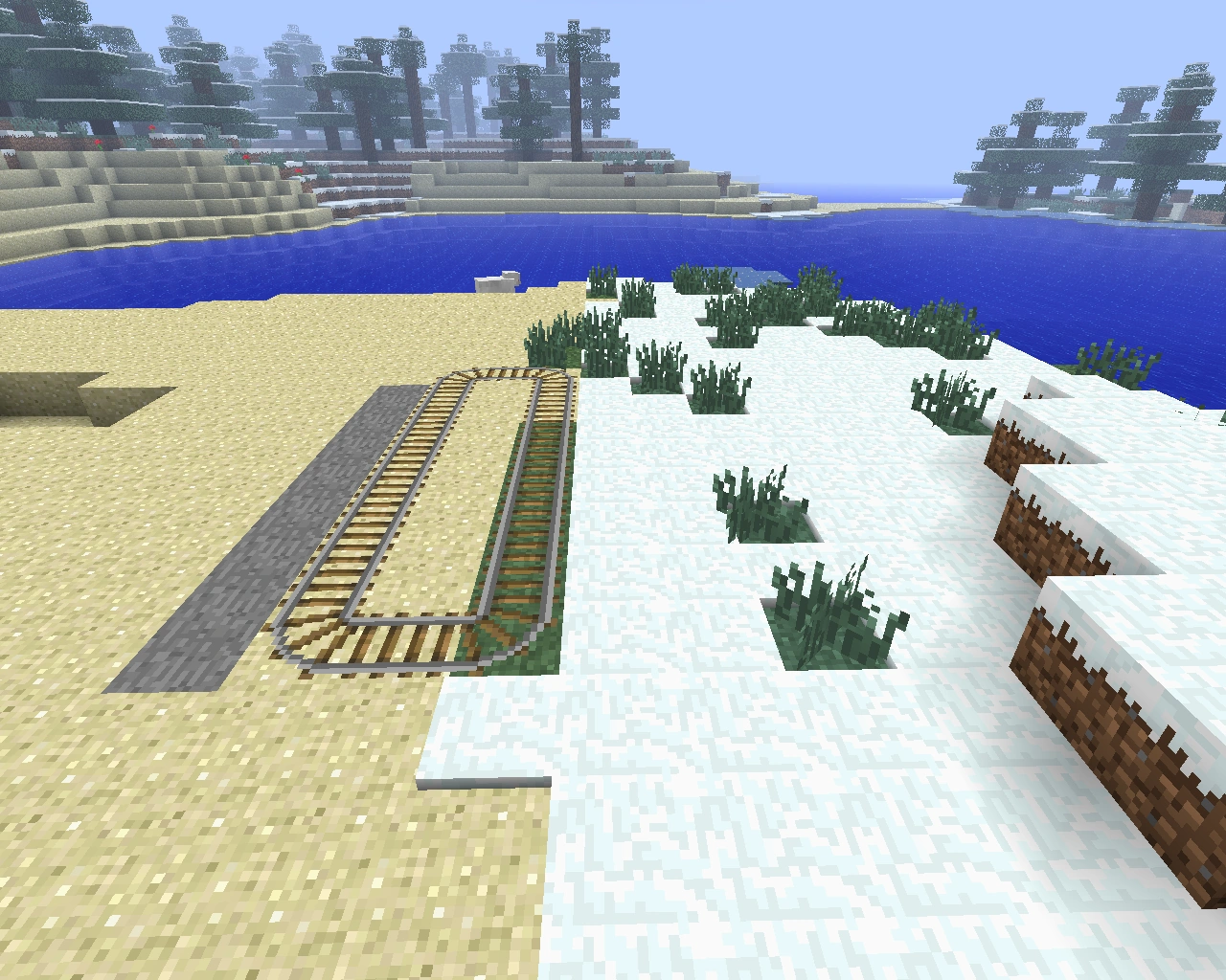 Самый простой тип железной дороги: устанавливаем рельсы один за другим и ограничиваем концы путей непрозрачными блоками.