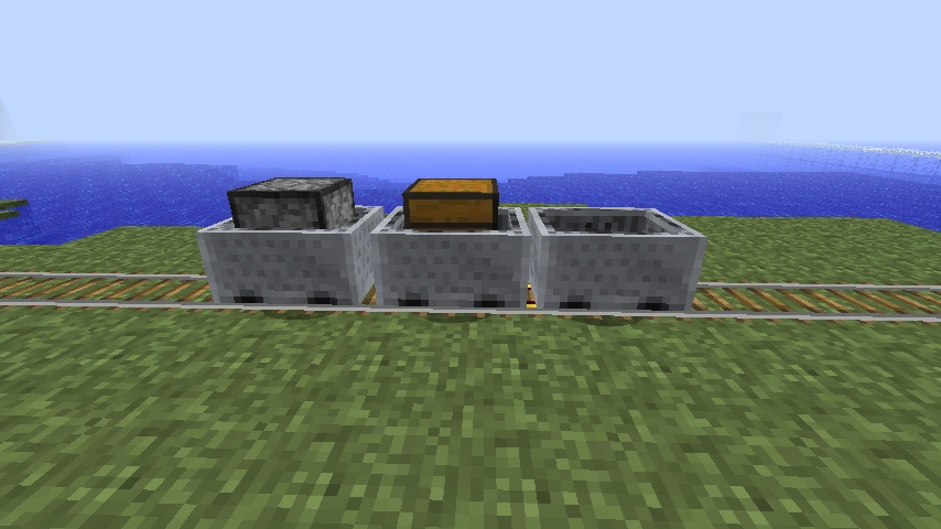 Вагонетки можно устанавливать только на рельсы (любые), и только на рельсах они будут свободно двигаться, иначе они просто застынут до тех пор, пока их не начнут толкать. Есть всего 7 типов вагонеток: