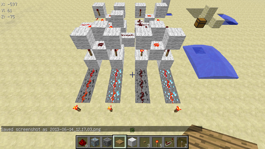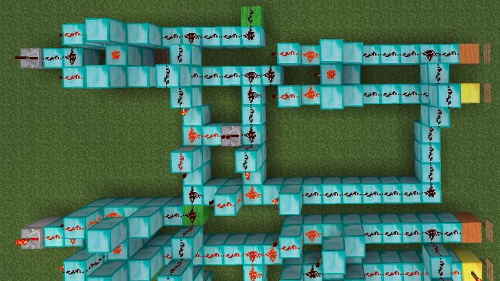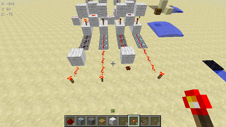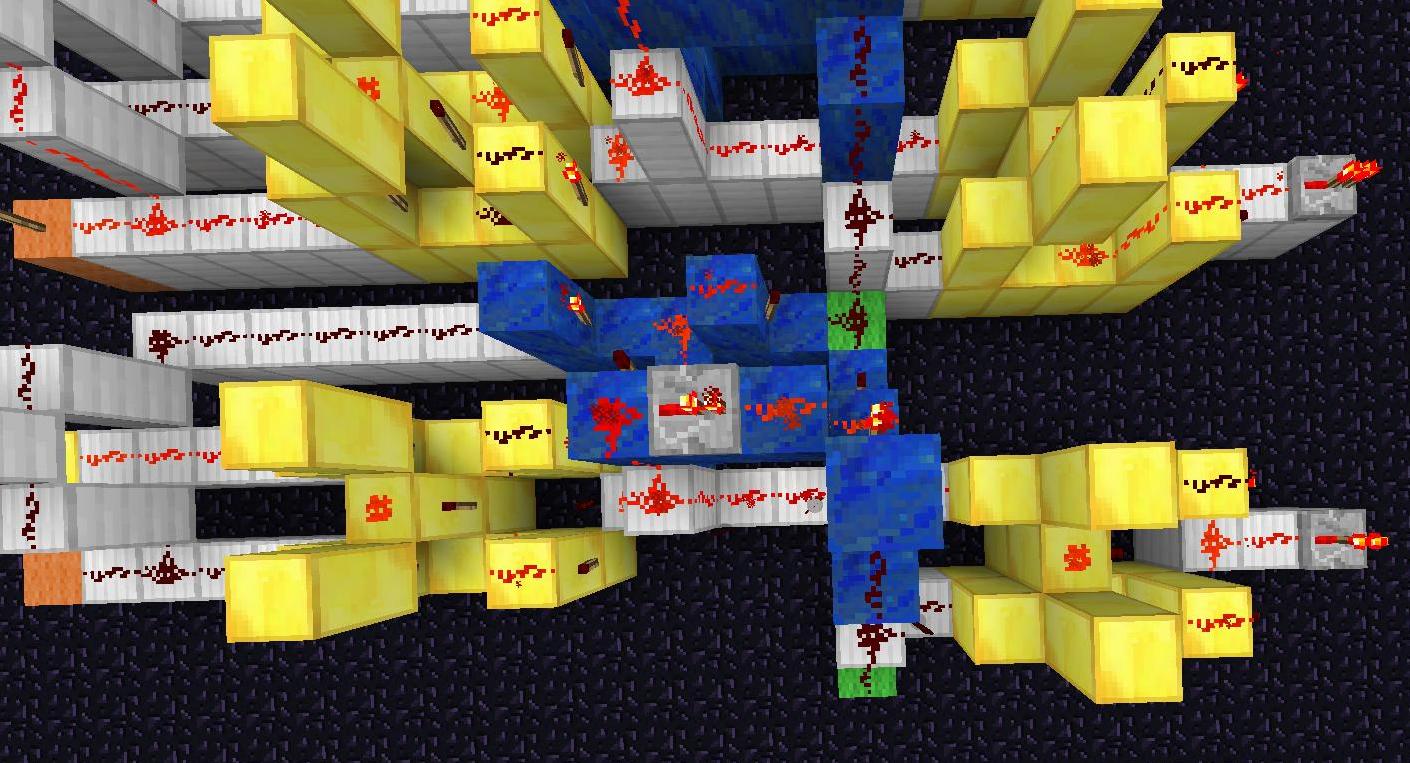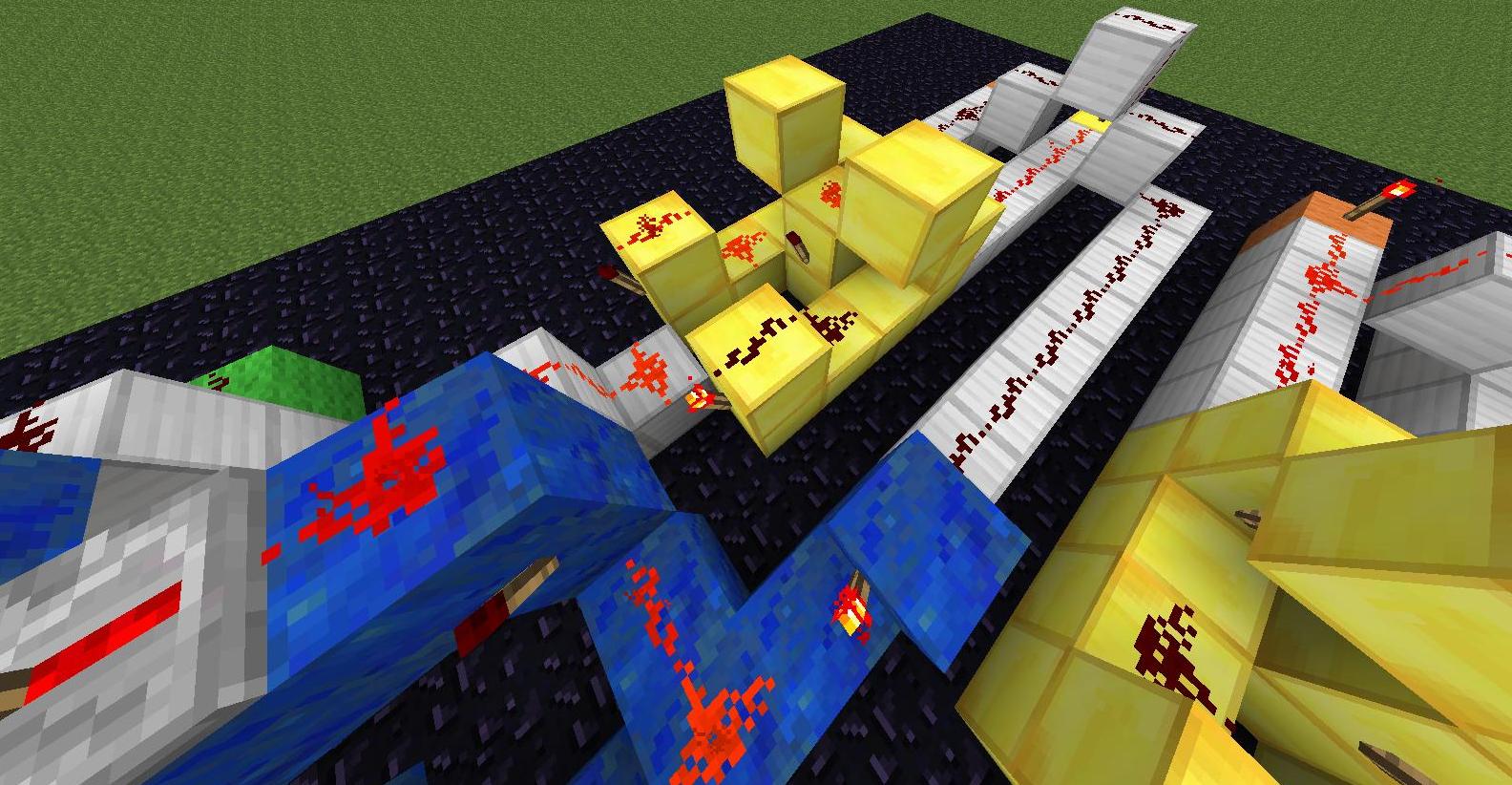 Данный механизм может использоваться во многих строениях, будь то посадочная полоса аэропорта, вывеска магазинчика на вашем любимом SMP сервере, станция метро. Даже ваше эпичное строение будет по особому выделяться ночью переливанием красных факелов. Факелы будут по очереди зажигаться «волной». Схема простейшая и основана на повторителях и тактовых генераторах. Приступаем к монтажу.