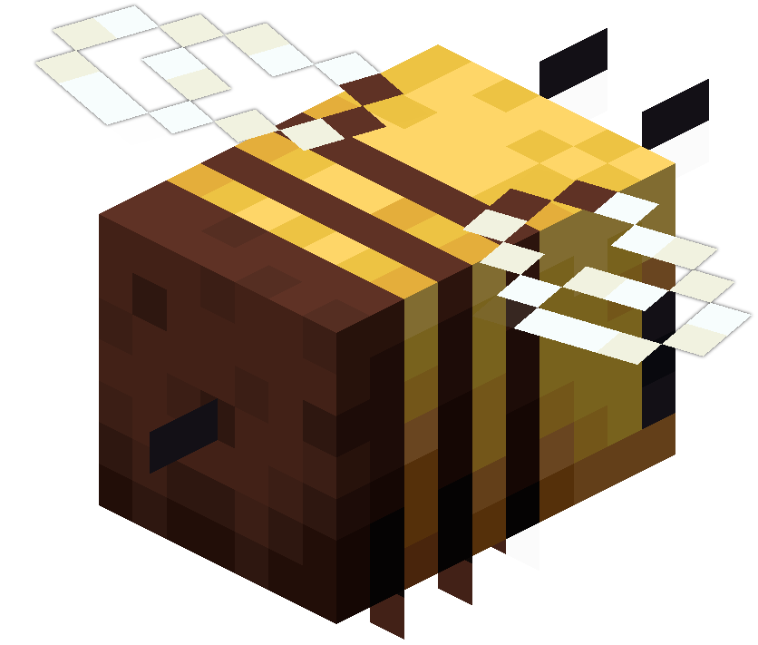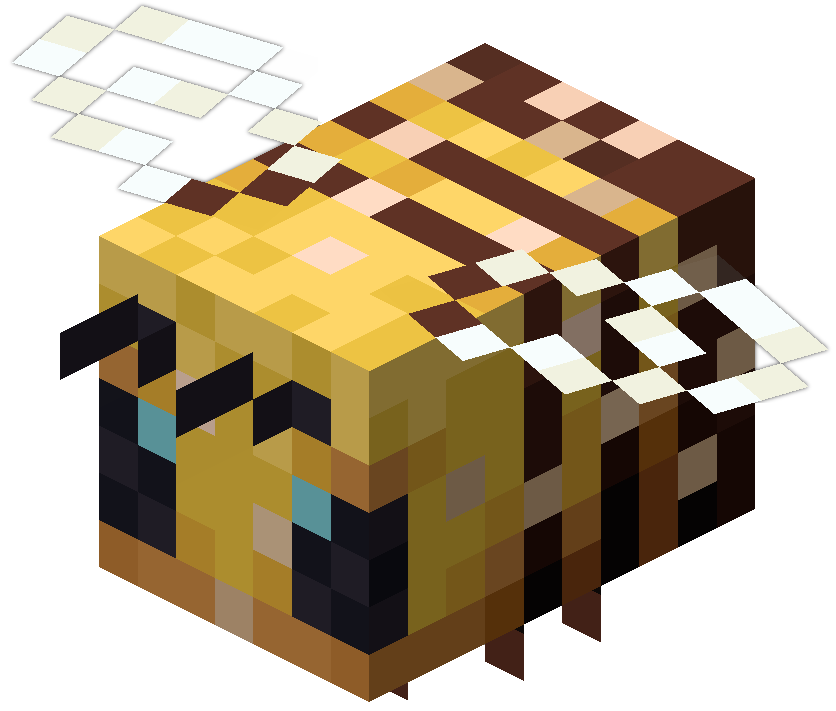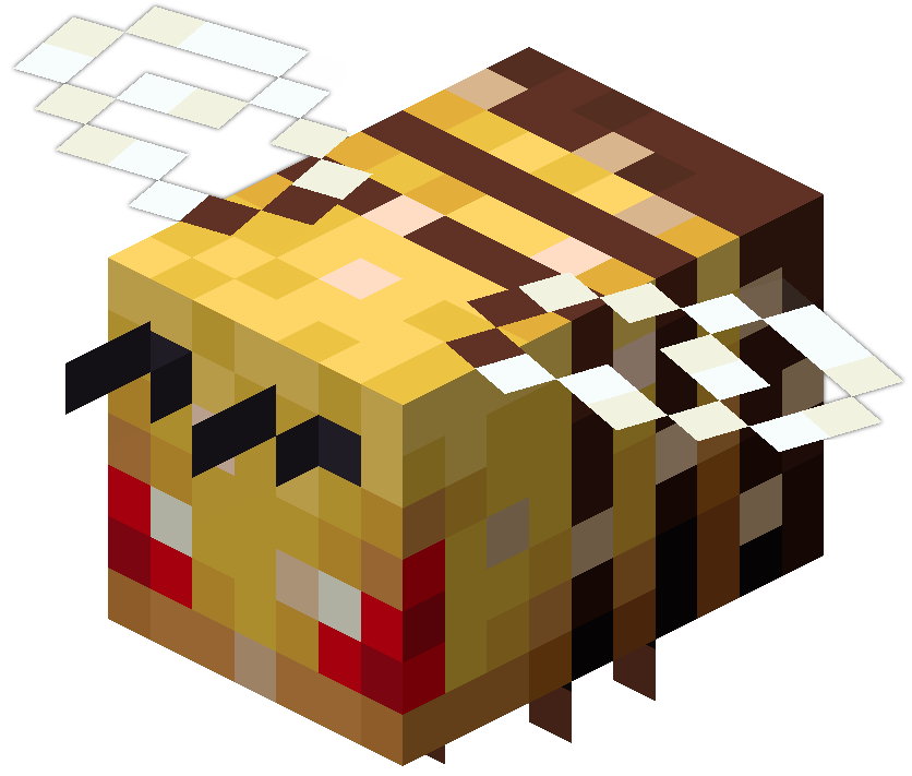 • Пчела — ещё один моб в Minecraft, который атакует группами. Остальные — чешуйницы, чешуйницы Края, волки, зомби-свинолюди, пиглины, и дельфины.