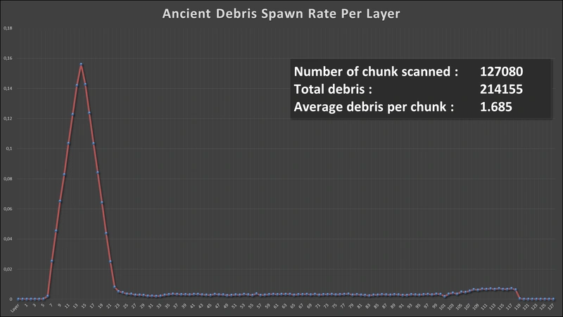 Этот график показывает фактическое количество древних обломков, найденных в относительно небольшом, но неиспользованном мире по состоянию на 20w06a