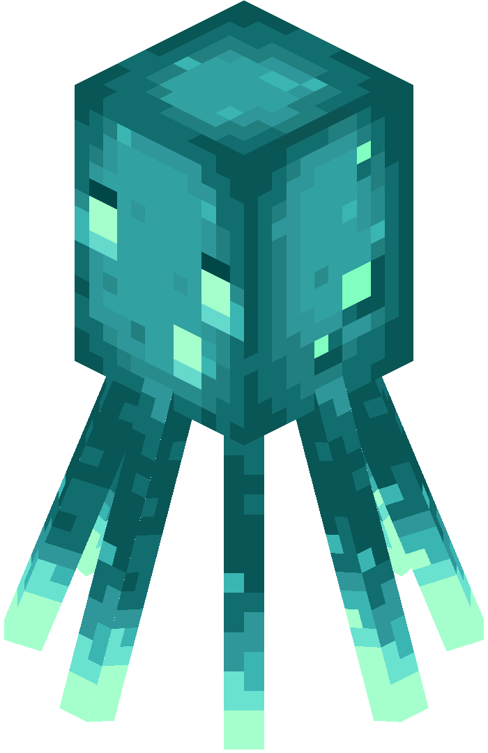 Аксолотли, стражи и древние стражи враждебно относятся к светящемуся спруту. Он также получает дополнительный урон от оружия с чарами «Пронзание».