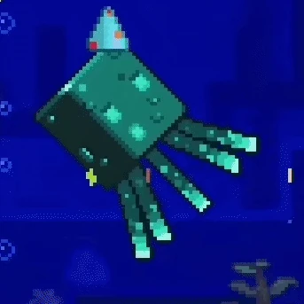 В отличие от других мобов, светящийся спрут способен двигаться против течения.