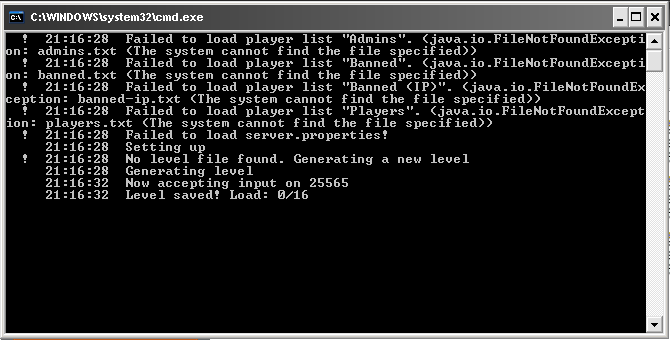 Примерный вид окна, появляющегося при первом запуске start server.bat.