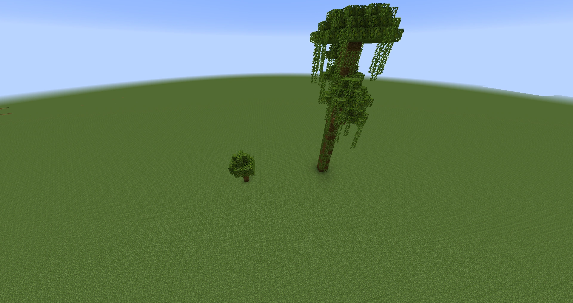 Обычные тропические деревья не имеют ветвей, а их ствол занимает пространство 1×1 блок на земле. Листва таких деревьев располагаются точно так же, как располагается листва берёзы.