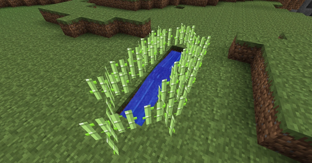 Чтобы плотно выращивать тростник, можно посадить его, окружая ямы 1×1 с водой. Таким образом, на каждую такую яму приходятся 4 стебля по форме знака +. По закономерности, ямы с водой ставятся по форме буквы Г — 2 блока в одну сторону и 1 блок перпендикулярно.