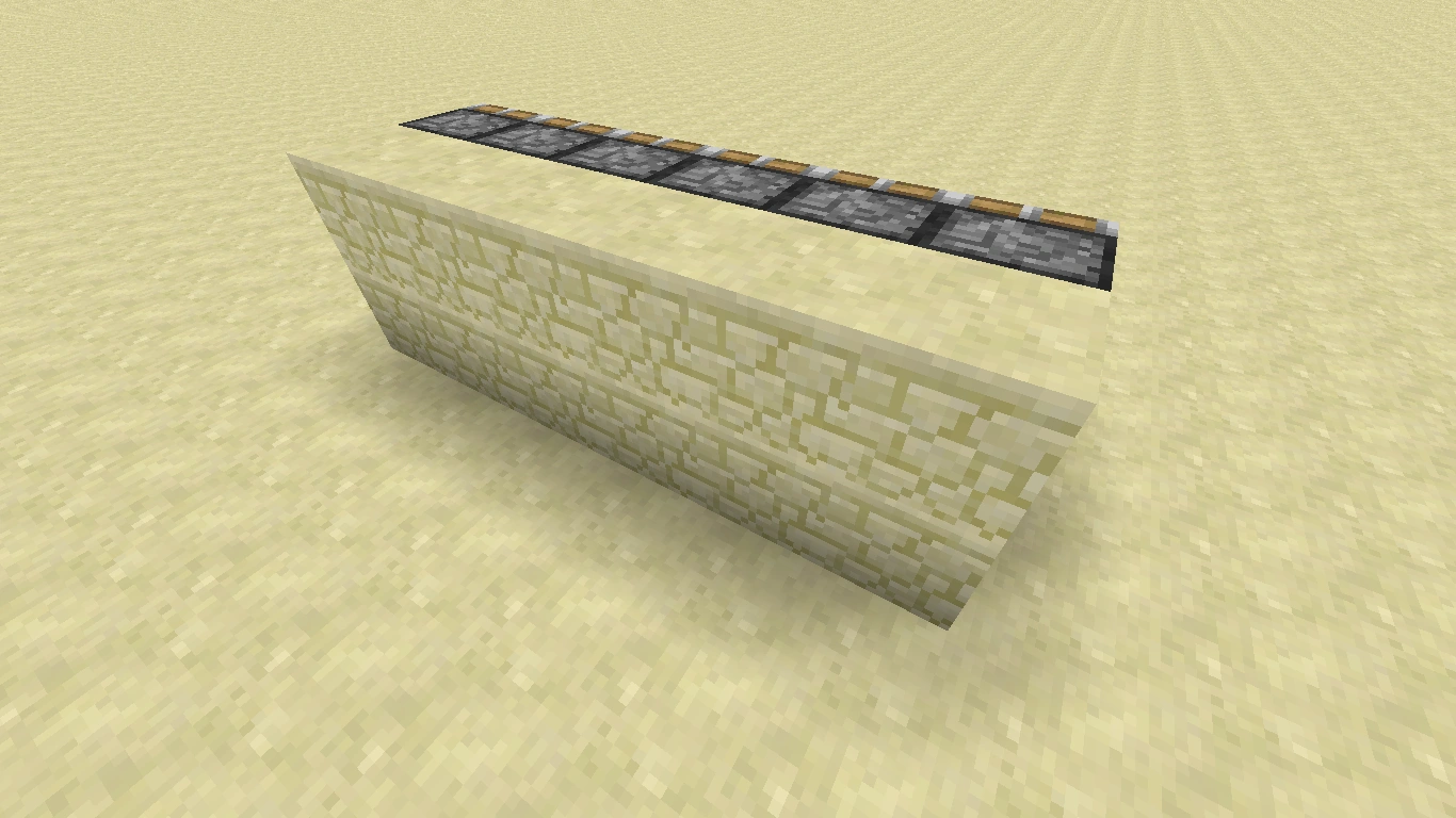 Последняя операция, необходимо разместить 2 слой поршней и красную пыль так, чтобы все поршни активировались с наступлением ночи. Как это сделать показано на рисунке.
