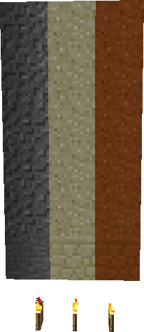 Для более эффективной добычи ресурсов, возможно просмотреть все доступные блоки на определённой высоте. Для примера взято 2 схемы проходки на 3 блока высотой, в разрезе (100×20 блоков):