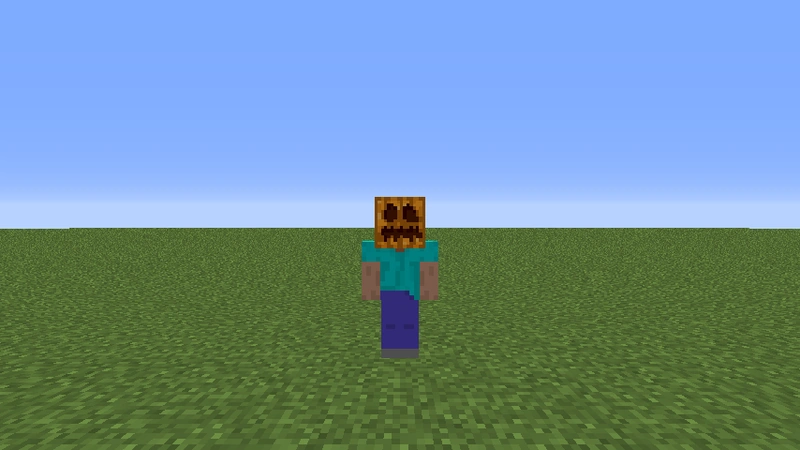 Вырезанную тыкву можно надеть на голову аналогично шлему. Она не даёт очков брони, однако позволяет смотреть на странника Края без риска нападения с его стороны. После надевания тыквы на голову, на экране затемняются некоторые части, получается эффект прорезей в тыкве. Этот эффект исчезает, если нажать F5. При надевании тыквы на голову Странники Края не будут агрессивны к вам, если вы на них посмотрите.