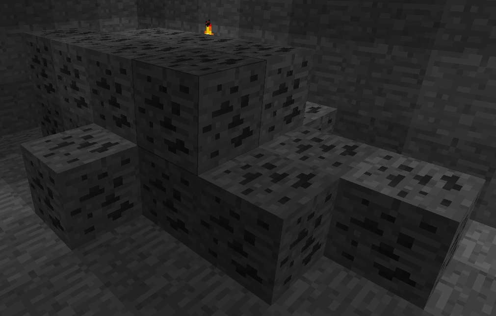 | Угольная руда восстанавливается после перезагрузки мира; предполагается, что рудные блоки были заменены каменными. | |||||