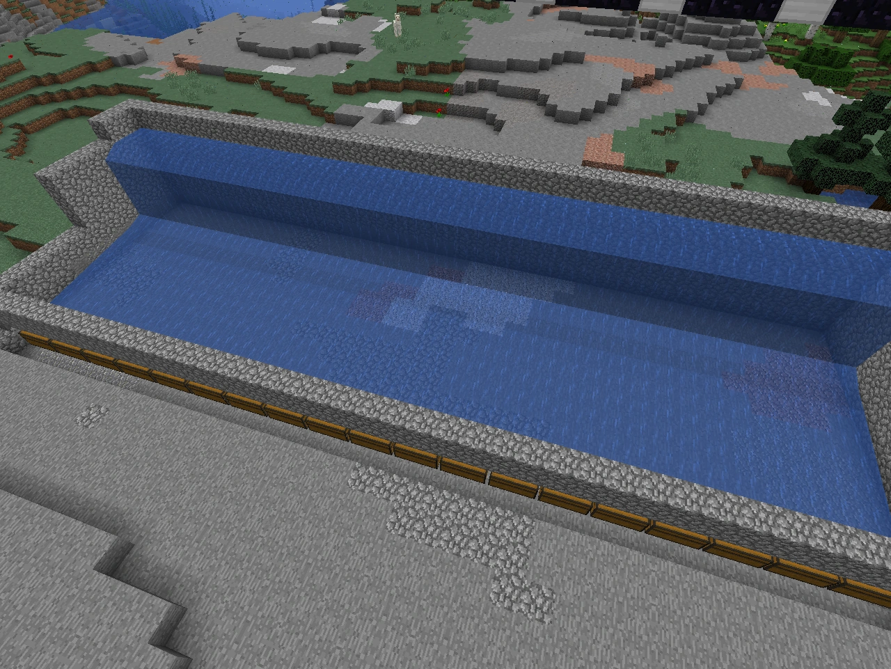 Как только вы построили огромное количество порталов, нужно заняться базой, где будут собираться мобы. Вполне нормальной базой будет небольшая яма из булыжника, ограждена во всю ширину созданных порталов, чтобы мобы скатывались вниз. Стену сзади порталов надо сделать повыше, и лучше несколько источников в длину, чтобы вода дошла до стены, куда будут скатываться свинозомби.