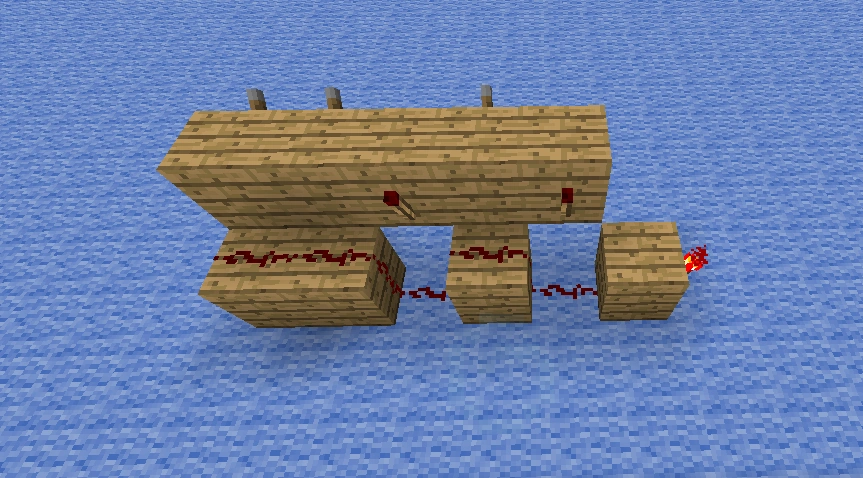 Замок построенный по такой схеме можно взломать, используя свойство красного факела перегорать при слишком быстром переключении. Чтобы взломать замок, нужно как можно быстрее переключать рычаг. Если за ним расположен факел, то через несколько секунд он перегорит с характерным шипящим звуком. Если звука не слышно, значит скорее всего факел отсутствует. Повторив эту процедуру для всех рычагов, мы узнаем расположение всех факелов. Остается только опустить все рычаги, за которыми есть факел, и замок открыт.