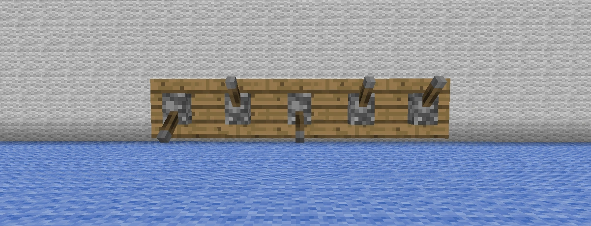 Для начала нужно сделать линию из блоков нужной длины и повесить на нее рычаги. Для удобства можно сразу опустить некоторые рычаги, чтобы получить требуемую комбинацию.