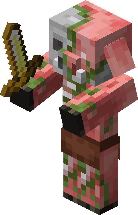 Пиглин — нейтральный моб, обитающий в багровом лесу, пустошах Нижнего мира или развалинах бастиона. Если игрок не одет в золотую броню, открывает сундук, добывает золотую руду или наносит удар первым, то пиглин, а также его сородичи в радиусе 16 блоков становятся враждебными по отношению к игроку. Пиглин может быть вооружён как золотым мечом, так и арбалетом. Пиглин с арбалетом стреляет каждые 2 секунды, а пиглин с мечом просто бросается на игрока. Таким образом, в одиночку эти существа не несут серьёзной опасности, но крупная группа, состоящая из этих мобов обладает явным тактическим преимуществом.