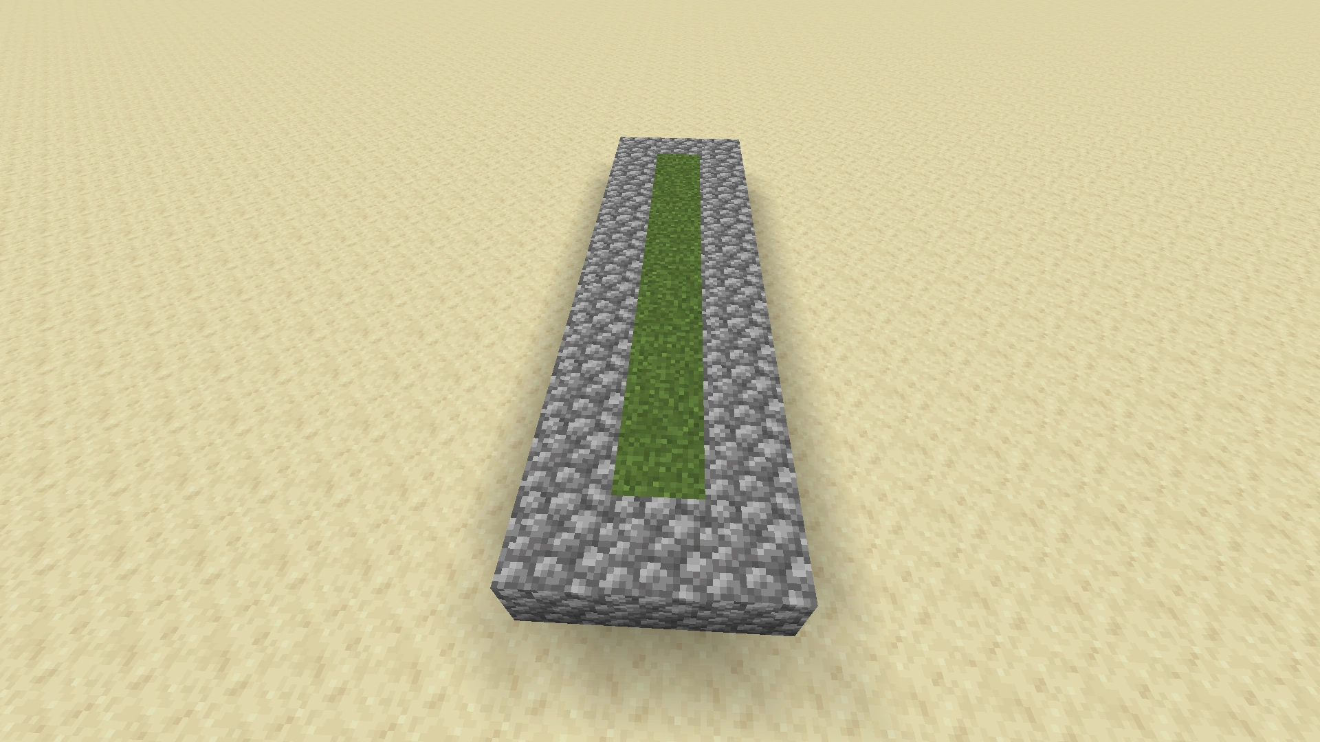 Найдите ровную поверхность и постройте фундамент для будущей фермы. Длина и ширина формы: 11x3. Посередине фундамента заложите грязь или дёрн.
