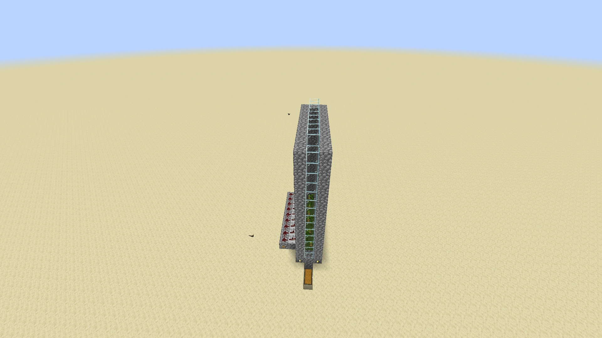 Такая ферма собирает бамбук когда вы нажимаете на кнопку, что значительно ускоряет сбор урожая. В такой ферме бамбук обрубается поршнем, после чего урожай падает в сундук через воронки. В данном примере фермы сбор урожая составляет 117 бамбуков за раз, но иногда обрубленный бамбук остаётся лежать на ростках и не собирается. Необходимые ресурсы для такой фермы: