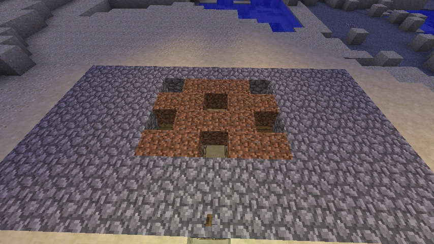 Закрываем потолок любыми блоками, так, чтобы внизу осталось два блока в высоту и делаем вход вниз.