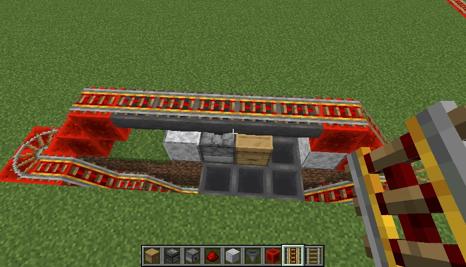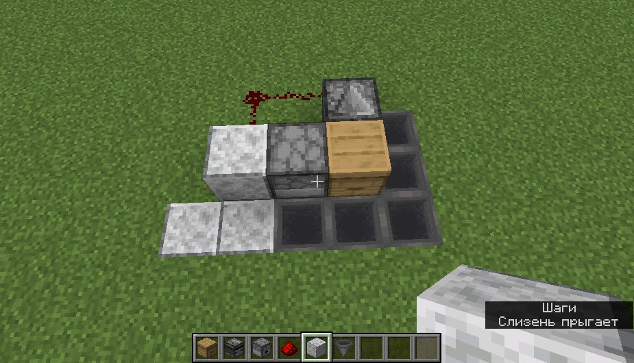 Ставим воронки вереницей, как на картинке. Воронка рядом с андезитом смотрит вниз, остальные присоединены цепочкой к ней. Ставим воронку на раздатчик.