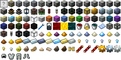 Белая минеральная шерстьБирюзовая минеральная шерстьБлестящий блокБлестящий кусочекБлестящий слитокБронзовая смесьВедро дестабилизированного красного камняВедро заряженного светящегося камняВедро резонирующего эндераВодный накопительВулканический прессГолубая минеральная шерстьДестабилизированный красный каменьДревесная щепкаЖидкостная трубаЖидкостный тессерактЖёлтая минеральная шерстьЗакалённое стеклоЗаряженный светящийся каменьЗелёная минеральная шерстьИзмельчительИзмельчённая медьИзмельчённое железоИзмельчённое золотоИзмельчённое оловоИзмельчённое сереброИзмельчённый блестящий металлИзмельчённый никельИзмельчённый обсидианИзмельчённый свинецИнварная кирасаИнварная смесьИнварная шестерняИнварные ботинкиИнварные поножиИнварный блокИнварный слитокИнварный шлемИндукционная плавильняКоричневая минеральная шерстьКрасная минеральная шерстьКрасная отдающая катушкаКрасная принимающая катушкаКрасная проводящая катушкаКрасная энергетическая трубаКрасная энергетическая труба (пустая)Кусочек инвараКусочек медиКусочек никеляКусочек оловаКусочек свинцаКусочек серебраКусочек электрумаЛаймовая минеральная шерстьЛатунная смесьЛедниковый осадительЛесопилкаМагмовый двигательМагмовый тигельМедная рудаМедная шестерняМедный блокМедный слитокМультиметрНенастроенный тессерактНикелевая рудаНикелевый блокНикелевый слитокОбогащённый шлакОловянная рудаОловянная шестерняОловянный блокОловянный слитокОпилкиОранжевая минеральная шерстьПаровой двигательПереносной резервуарПневматический сервомоторПредметный тессерактПрессованные опилкиПурпурная минеральная шерстьРамка красной энергетической ячейки (полная)Рамка красной энергетической ячейки (пустая)Рамка механизмаРамка светильникаРамка тессерактаРаспределитель жидкостиРезонирующий эндерРозовая минеральная шерстьСветильник из светокамняСветло-серая минеральная шерстьСвинцовая рудаСвинцовый блокСвинцовый слитокСелитраСераСерая минеральная шерстьСеребряная рудаСеребряный блокСеребряный слитокСерповидный молотСиняя минеральная шерстьСхемаФиолетовая минеральная шерстьЦиклический сборщикЧёрная минеральная шерстьШлакЭлектрическая печьЭлектрумовая смесьЭлектрумовый блокЭлектрумовый слитокЭнергетическая ячейкаЭнергетическая ячейка (заряженная)Энергетический зарядникЭнергетический тессерактНеизвестно
