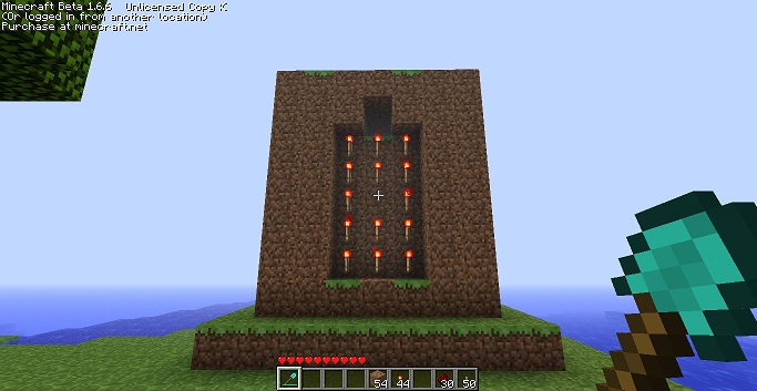 Этап 6. Ставим блок с красным факелом по центру.